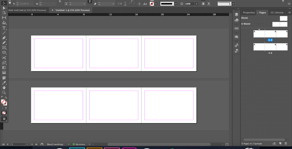 You should now have two sets of three facing pages that represents the front and back of your Letter-Half tri-fold brochure.
