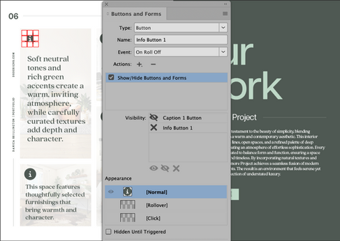 Once you have the Roll Over and Roll Off settings in place, it's time to export the project as an Interactive PDF and test it out in Adobe Acrobat.